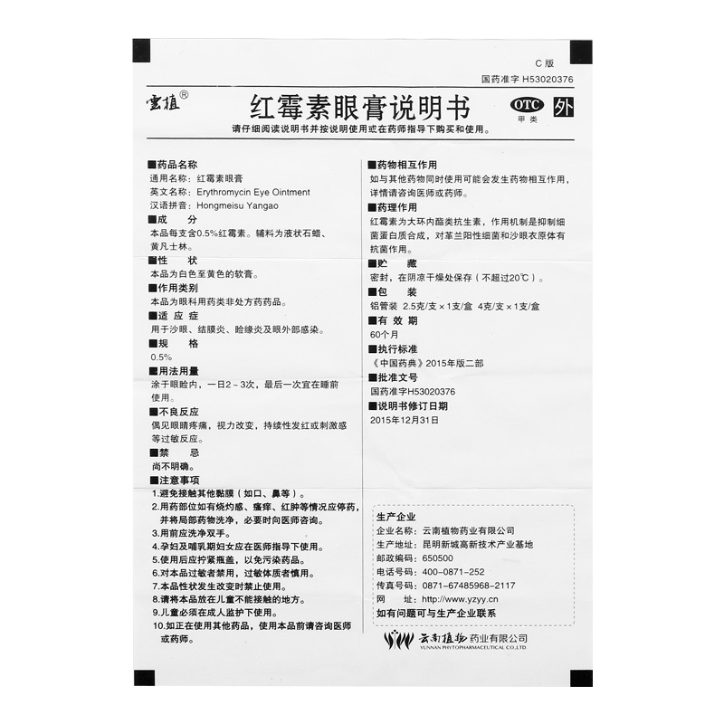 首页>全部商品>日常用药>五官用药>眼部炎症>云植 红霉素眼膏 0.5%:2.5g沙眼结膜炎脸缘炎眼外部感染药膏软膏