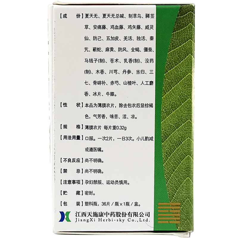 首页>全部商品>专科用药>风湿关节>风湿骨痛>龙虎山复方夏天无片36片