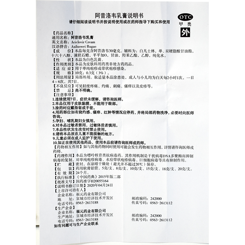 首页>全部商品>专科用药>皮肤性病>生殖疱疹>福元 阿昔洛韦乳膏10g