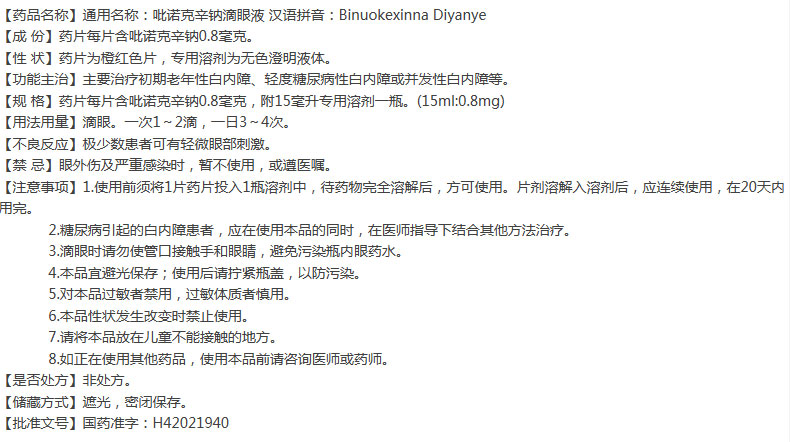 【药品名称】通用名称:吡诺克辛钠滴眼液 汉语拼音:Binuokexinna Diyanye